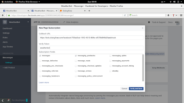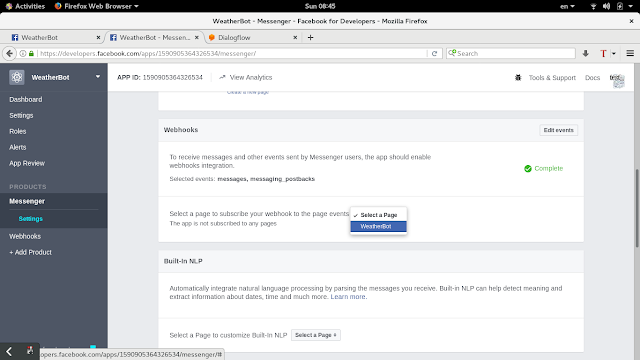Sau khi add product xông thì bạn vào product “messenger” , phần token generation chọn fanpage “Weatherbot”