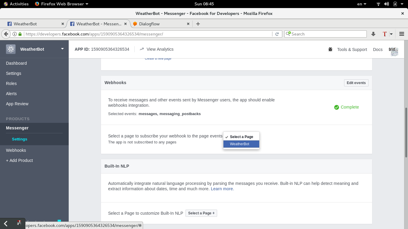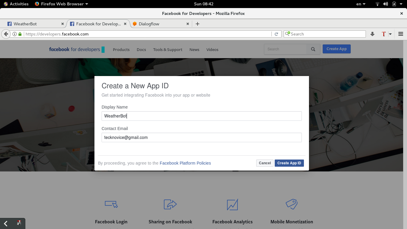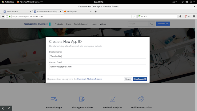 Bạn tạo 1 fanpage có tên là “Weatherbot”Tạo Facebook App
